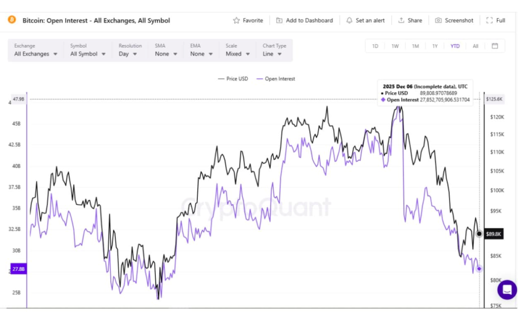 Another supportive data point comes from derivatives markets. Analyst Carmelo Alemán highlighted a synchronized decline in both price and open interest (OI) across exchanges—an indication of futures unwinding rather than spot selling.