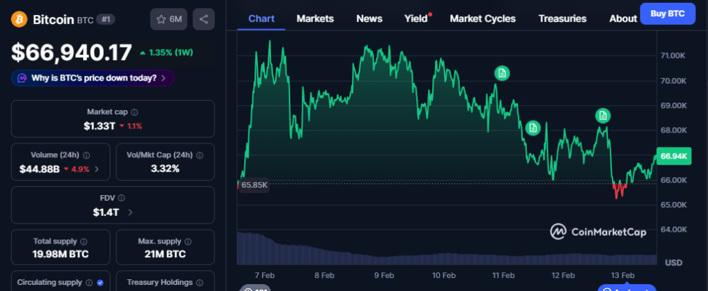 Bitcoin is struggling to regain momentum after failing to hold above $72,000, with a mix of institutional outflows, cautious derivatives markets, and macro uncertainty weighing on sentiment. The leading cryptocurrency is hovering near $66,000, and analysts warn that a deeper correction could unfold if market confidence does not improve.