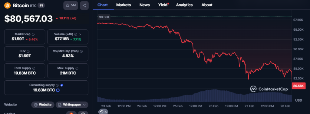 Also Read: Bitcoin (BTC) Crashes Below $80K as $1 Trillion Wiped from Crypto Market—Is $70K Next?