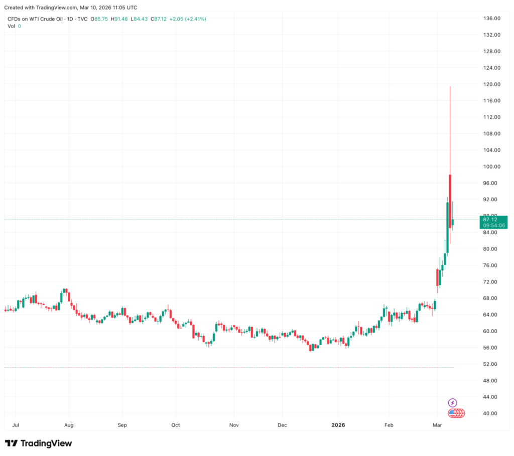 Bitcoin (BTC) surged past $70,700 on Wednesday, fueled by former President Donald Trump’s suggestion that U.S. and Israeli military operations against Iran could be winding down. The remarks triggered an immediate sell-off in global energy markets, with West Texas Intermediate (WTI) crude plunging from highs of $120 to $85 per barrel before settling around $89.