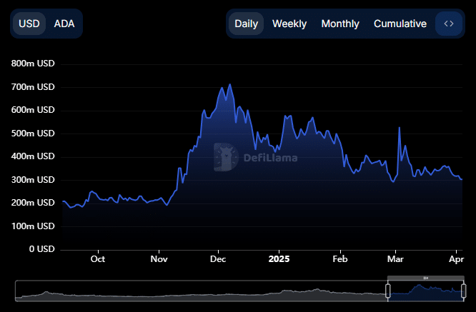 On the DeFi front, the Total Value Locked (TVL) on the Cardano blockchain has also experienced a noticeable decline. From a peak of $319.58 million in April, the TVL has dropped to $304.04 million. This decrease in TVL points to ongoing withdrawals by DeFi investors, further contributing to ADA’s bearish momentum.