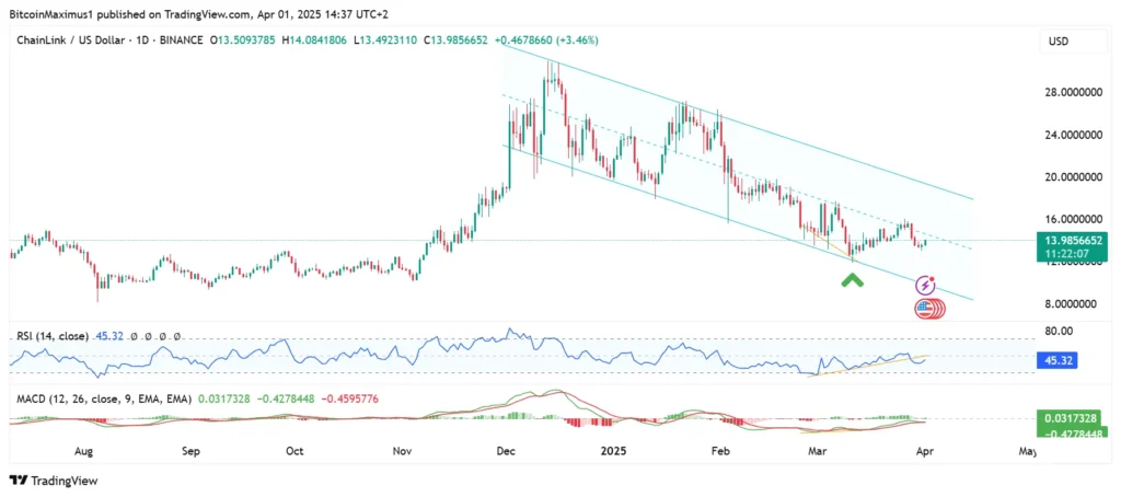 Since December 2024, LINK has been trading within a descending parallel channel, consistently making lower highs. While the token briefly rebounded in early March, it failed to breach the channel’s midline, leading to a rejection and subsequent decline last week.