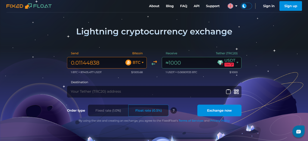 FixedFloat provides cryptocurrency exchanges with the lowest fees for users who value speed and simplicity. Operating since 2018, this fully automated platform charges just 0.5% for floating rates or 1% for fixed rates—both below many competitors. The Lightning Network integration enables near-instant Bitcoin transactions.
