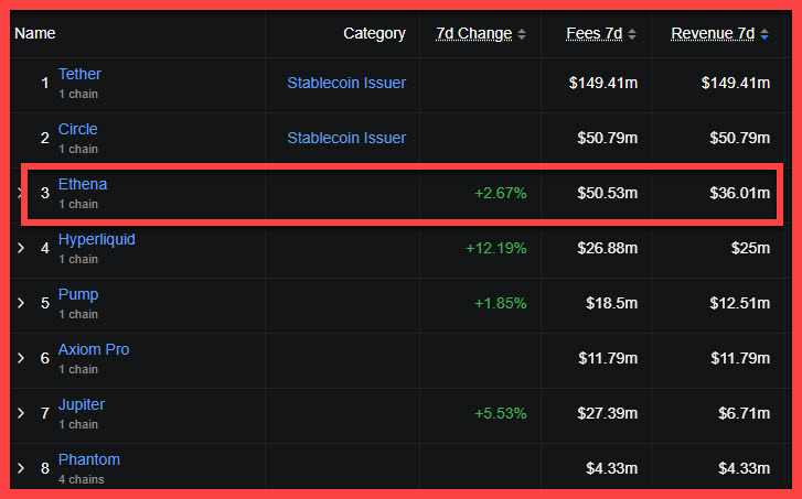 Despite recent price weakness, Ethena’s fundamentals remain strong. The decentralized finance platform generated $36 million in revenue over the past week, a notable figure for its ecosystem growth. Investors are also monitoring Ethena’s $136 million funding round and its upcoming airdrop, which will reward users staking ENA into sENA, strengthening community participation.