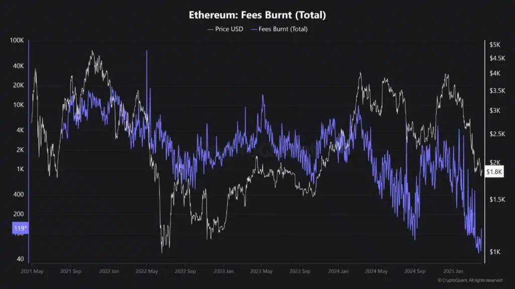 Lower burn rates suggest fewer high-priority transactions and a lack of urgency among users, which, when combined with declining engagement, indicates an overall loss of momentum within the Ethereum ecosystem.