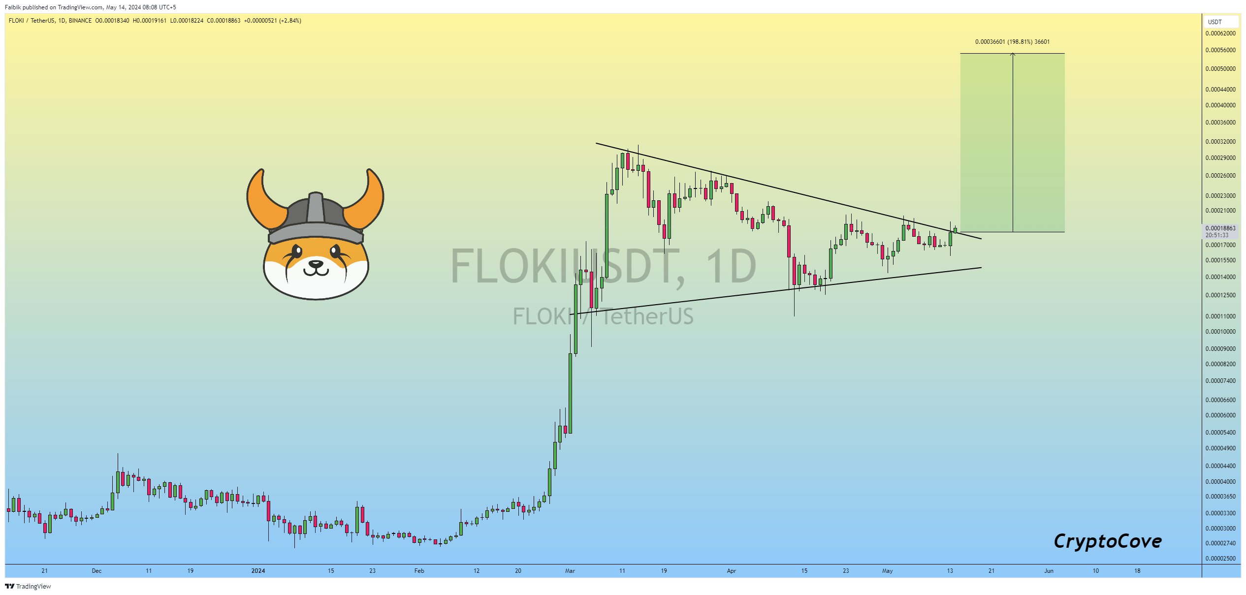 Crypto analysts are taking notice. Captain Faibik, a respected figure in the space, sees a bullish pennant formation on FLOKI’s daily chart. This pattern often indicates a period of consolidation followed by a continuation of the upward trend. Based on this technical analysis, Faibik predicts a robust rally in the coming months, projecting gains of approximately 180-200%.
