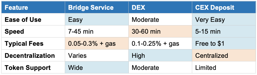 There are three primary ways to bridge tokens to Polygon, each with distinct advantages and trade-offs: