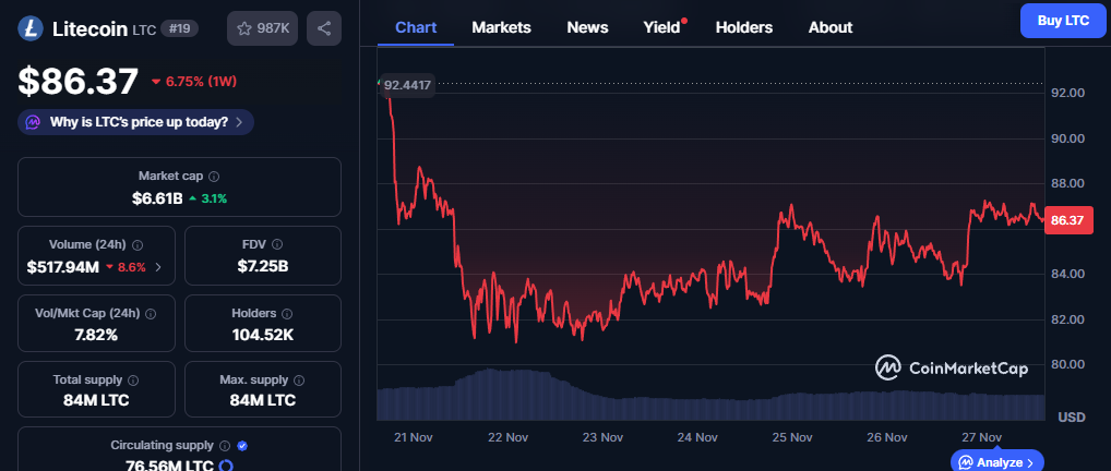 Also Read: Litecoin Price Analysis: Key Resistance at $101.50 Could Trigger Move to $112