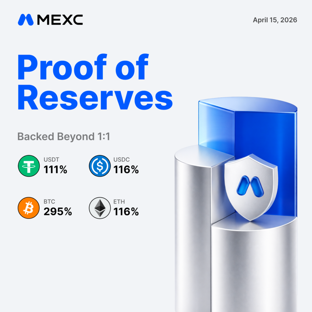 Victoria, Seychelles, April 15, 2026 – MEXC, the world leader in 0‑fee digital asset trading, published its April 2026 Proof of Reserves. BTC reserve ratio rose to 295%, with all major assets maintaining reserve ratios well above the 1:1 industry standard, ensuring full coverage and safeguarding user assets.