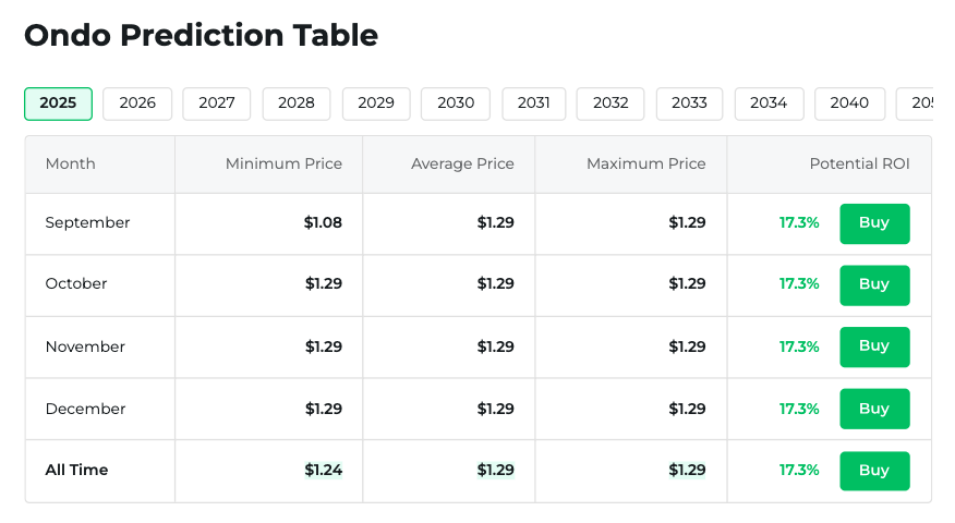 By contrast, Changelly projects a more conservative 2025 range between $1.08 and $1.29, with an expected ROI of about 17.3%. This divergence highlights the importance of risk management as ONDO attempts to sustain its momentum.