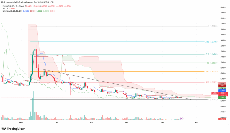 Pi Network (PI) has stabilized after weeks of decline, hovering around the $0.36 support level. Despite optimism across global markets following the Federal Reserve’s recent rate cut, PI shows little sign of benefiting from broader risk-on sentiment. Trading volume remains thin, and speculative interest appears muted, leaving the cryptocurrency’s short-term outlook fragile.