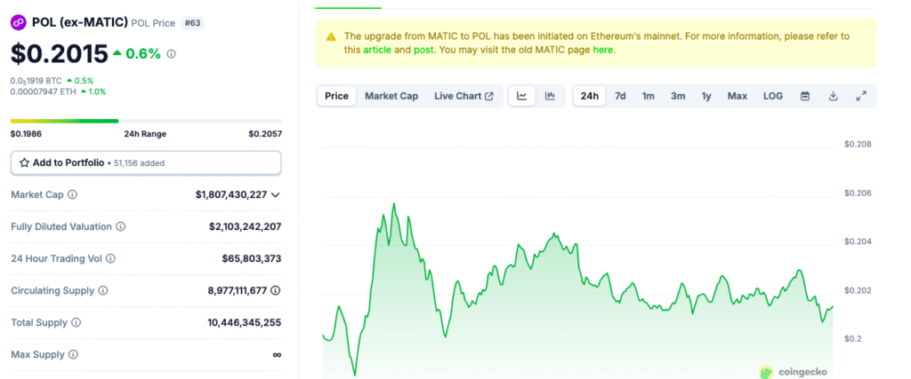 POL is currently trading at $0.2015. However, technical analysis suggests the token is forming a falling wedge pattern—a structure often preceding breakouts.