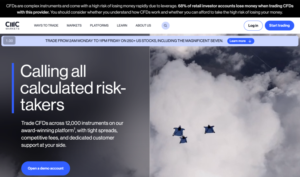 Alt text: UK-based CFD provider with AI-powered platform offering cryptocurrency trading and educational resources.