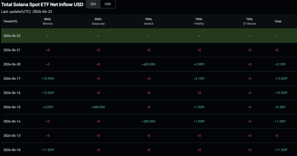 Meanwhile, Bitwise dominates the ETF landscape, with its BSOL product controlling about 62% of the U.S. market. A single-day inflow of $15.5 million highlights growing demand, reinforcing the idea that institutional players are steadily accumulating exposure.