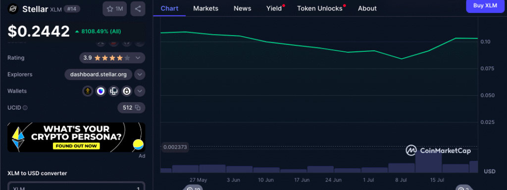 Stellar’s core appeal remains its real-world utility in fast, low-cost cross-border transactions. Its tech has drawn major institutional interest, including partnerships involving Visa, JP Morgan, and Deutsche Bank. XLM also powers USDC transactions globally, further establishing its role in the decentralized finance (DeFi) ecosystem.