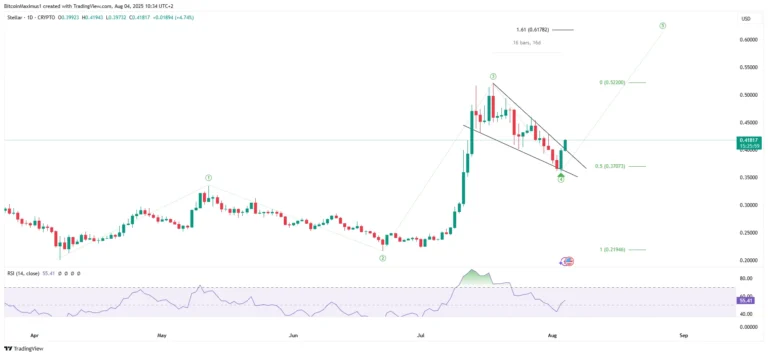 As Stellar (XLM) nears the apex of a multi-year symmetrical triangle, bullish momentum is gaining strength, suggesting a major breakout could be on the horizon. With strong technical indicators and a completed Elliott Wave structure, analysts are eyeing $0.62 and $0.80 as the next key resistance levels.