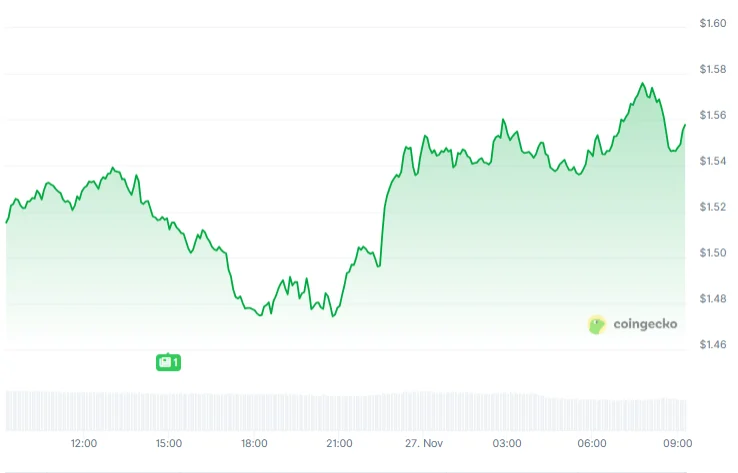 Sui (SUI) has shown a promising uptick recently, with its price trading at $1.57, driven by a market cap of $5.78 billion and a 24-hour trading volume of $1.20 billion. This marks a 1.44% increase in the past 24 hours, signaling renewed interest in the token after a brief pullback. However, the key question for investors remains: Can SUI maintain this momentum or will it face further price fluctuations in the near term?