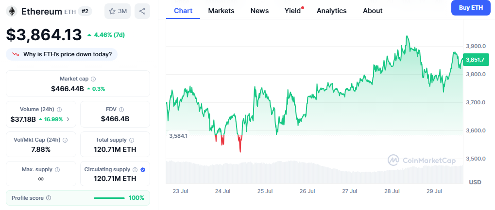 Also Read: Ethereum Gains 50% in July, Nears $4K Breakout