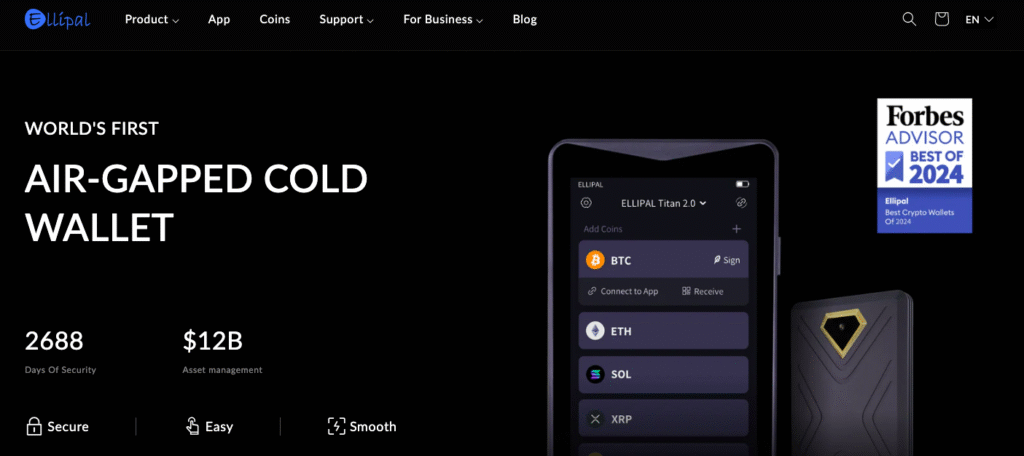 If you’re looking for a fully air-gapped wallet with NFT and DeFi compatibility, the ELLIPAL Titan 2.0 delivers. It signs transactions using QR codes—keeping your keys completely offline—and integrates with the ELLIPAL app for dApp access.