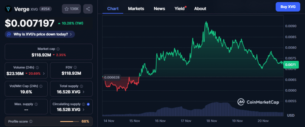 The Verge (XVG) token has remained a staple in the crypto space for over a decade, championing fast, low-cost, and privacy-focused transactions. Leveraging a Proof-of-Work (PoW) consensus mechanism, XVG has built a dedicated user base. However, the token faces growing competition from newer layer-one blockchains offering advanced smart contract capabilities. Despite this, Verge’s continued emphasis on privacy and affordability keeps it relevant among speculative traders and crypto enthusiasts.