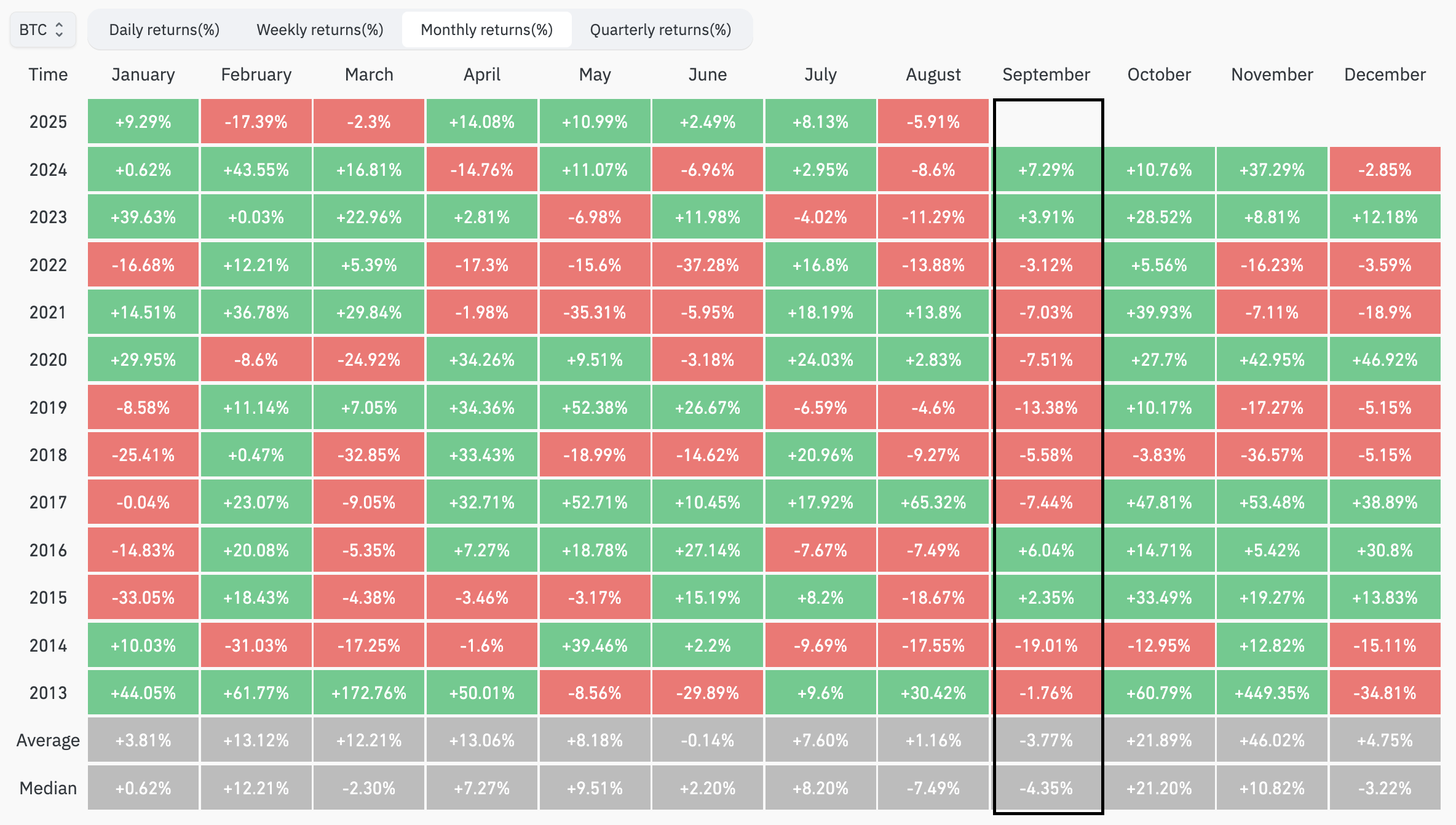 - Bitcoin historically struggles in September but 2025 may defy the trend.