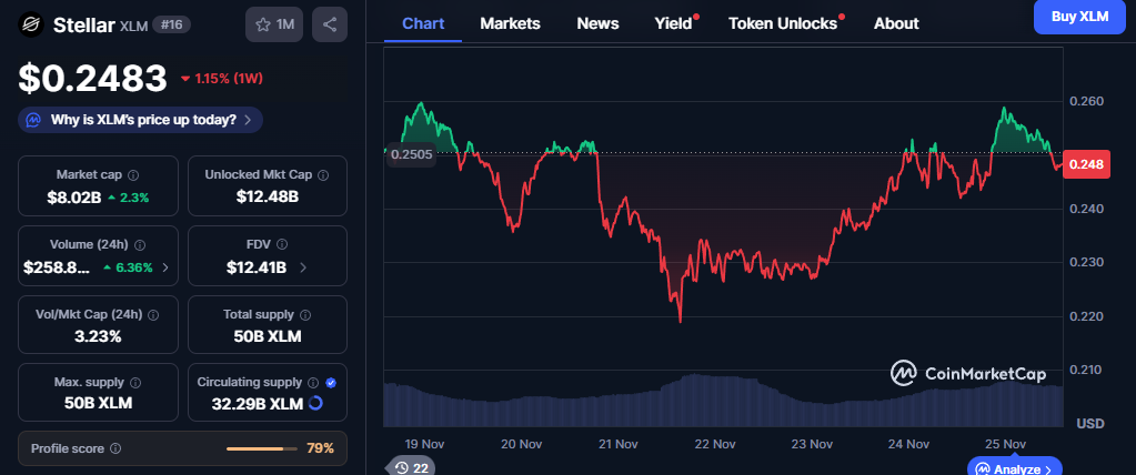 Stellar (XLM) is attracting renewed attention this week as its price once again defended the critical $0.23 support zone, triggering a fresh upward reaction that mirrors several historic rebound phases. The cryptocurrency’s latest bounce—showing a clean 38% technical setup—suggests that traders may be witnessing the early stages of another short-term rally.