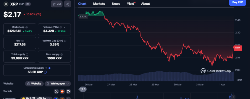 XRP is facing intense selling pressure, with its price plummeting over 13% in the past week. The cryptocurrency is currently teetering around the crucial $2 mark, a level that could determine its next major move. After hitting a low of $2.03, XRP briefly rebounded above $2.11, but uncertainty remains over whether this recovery is sustainable. Amidst this volatility, a prominent analyst has predicted a potential drop to $1.5 if XRP fails to maintain support at $2.03.